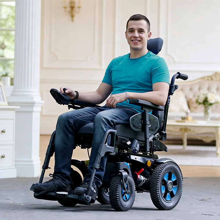 Designed for long-term daily use, the E100 Power Wheelchair provides comfort, stability, and adaptability for people with limited mobility. Its fully adjustable seating system allows customization of seat angle, backrest, footrest, width, height, and depth to fit different body types. Adjustable or removable armrests and legrests support flexible positioning and easy transfers. A sturdy frame with advanced shock absorption ensures a smooth, stable ride indoors and outdoors. Powered by a strong motor and high-capacity battery, the E100 offers reliable performance, extended driving range, and excellent maneuverability in confined spaces.